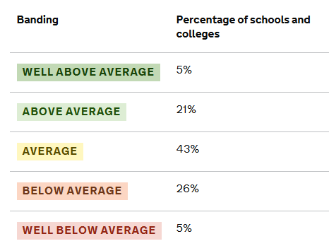 The Progress Score provided by the DFE and equates to a national ranking of all Schools and Colleges in England.