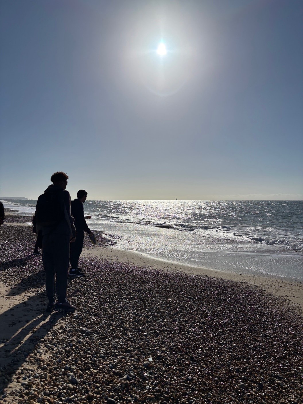 The purpose of our trip was to collect data that would help us to answer our key question: ‘To what extent does beach width vary at Hengistbury head?’ We went to three different sites and at each site we were split into groups of 4/5. We measured how wide the beach was as well as the rate of longshore drift. Although we had practised this in class, doing it in the open was slightly more challenging than expected as the wind kept blowing our tape measure, so we had to come together as a team and try and solve that particular problem.