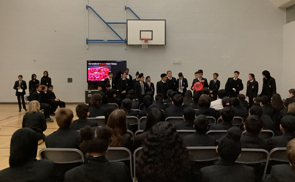7 Green’s Remembrance Day assembly was a tribute to those who have served and sacrificed in times of war. The performance combined dance, poetry, drama, and heartfelt words of respect to honour the courage and resilience of veterans and those affected by conflict. Through expressive dance, students conveyed the emotional weight of remembrance, while poems were written by Khadijah and Harisrat and brought stories of bravery and loss to life. The assembly concluded with reflective words that were placed in a poppy wreath created by Harikat. Well done 7 Green!