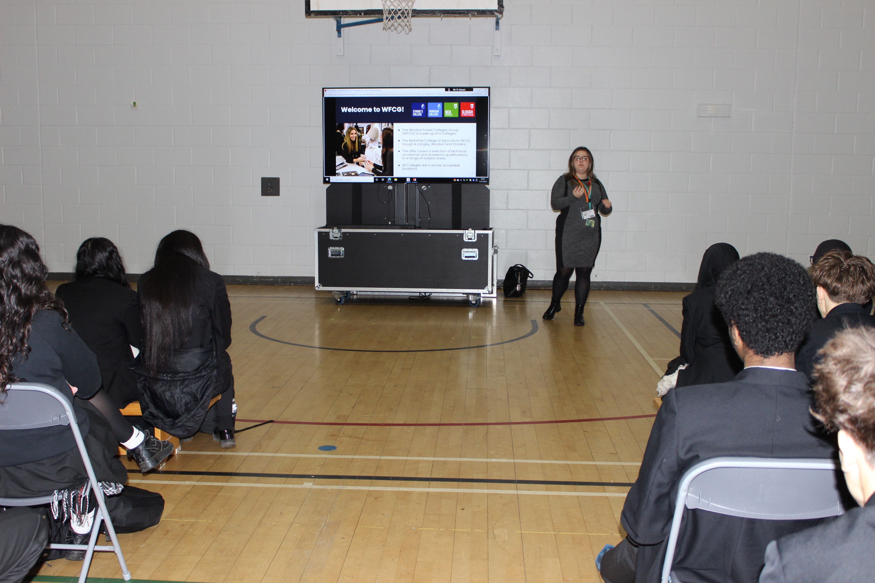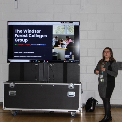 The talk was about a potential Post 16 college option made up of four colleges which offer Level One through to Level 3 courses. They offer many departments and facilities, including a sports academy and a motor mechanics engineering workshop. Slough and Langley apprenticeships are also offered. It was an insightful talk and showed options for students after GCSEs. It was hugely beneficial to people who weren’t sure about what they would do as yet and all the potential pathways at Post 16 available to them.