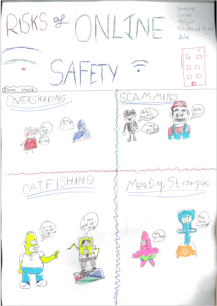 Inayah Mughal [7Y]: We wrote about online safety to show awareness of the dangers and risks that could occur, we learnt how to stay safe online and know the major risks online. Online safety is really important because it can teach you how to stay safe by protecting your personal information, not meeting strangers or talking to them online.